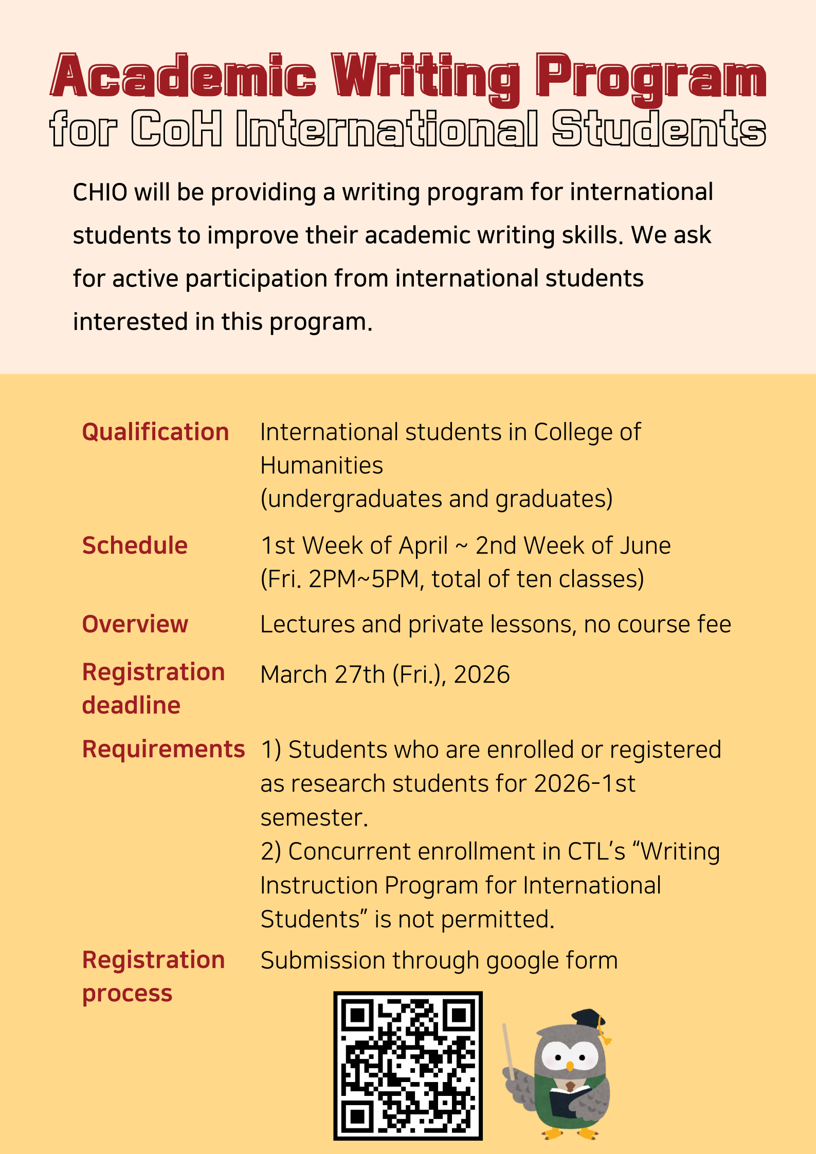 [모집] 국제학생을 위한 '학술적 한국어 글쓰기' 프로그램/Korean Academic Writing Program